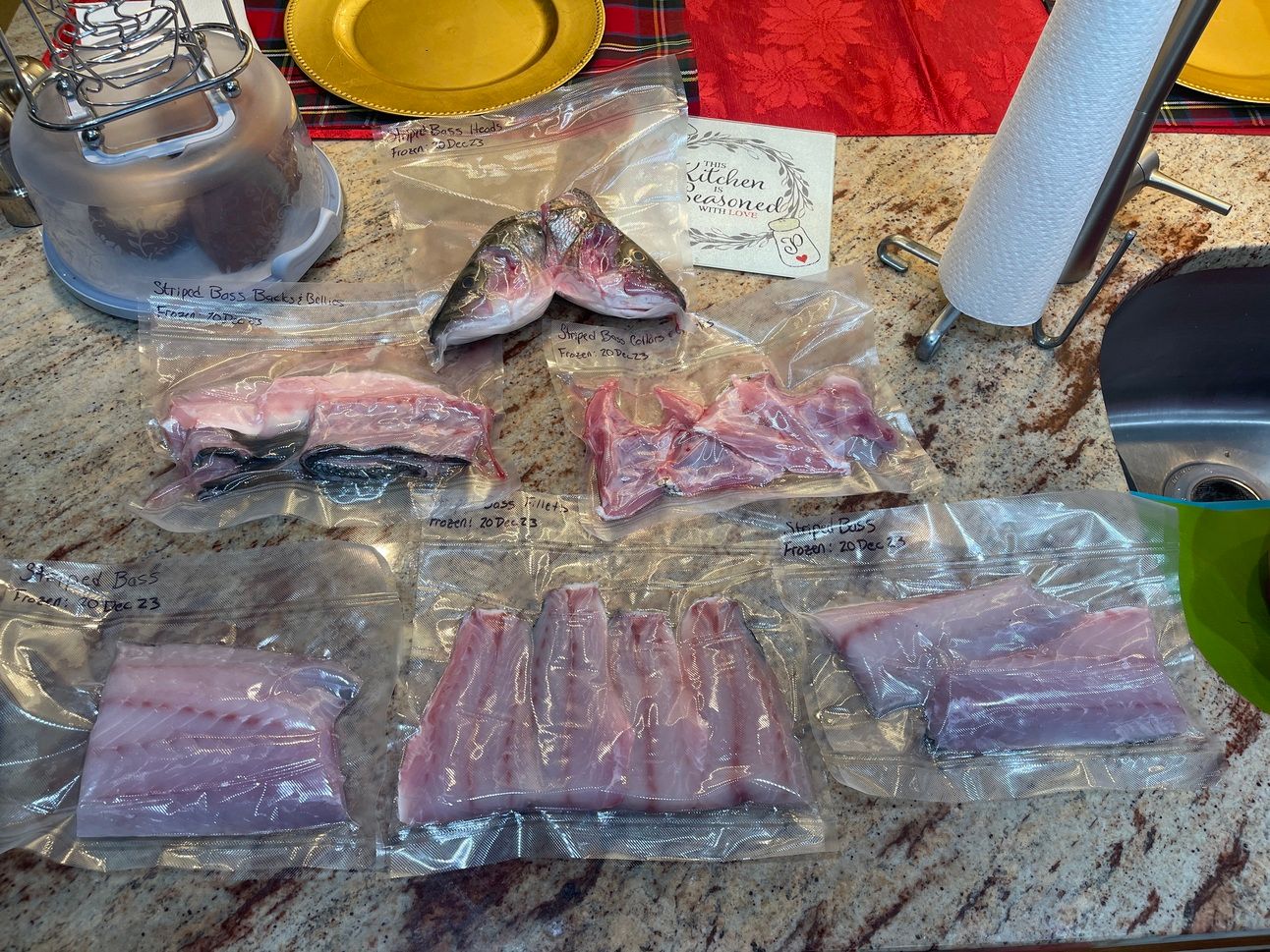 I was in Maryland this past week, visiting my parents and decided to go to the local Whole Foods to find some Striped Bass, my favorite fish of all time. I found some and mongered them in my step-mother’s kitchen (she’s such a sweet and generous person), and froze them for the trip back to Michigan.
