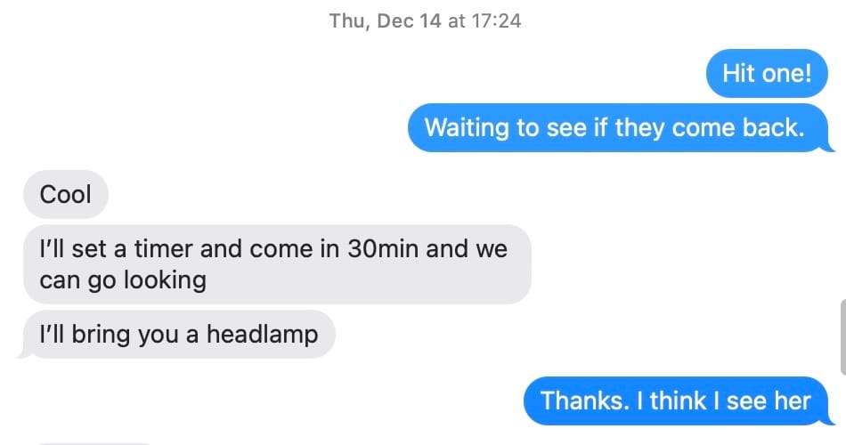 Text between me and B after I shot the doe.